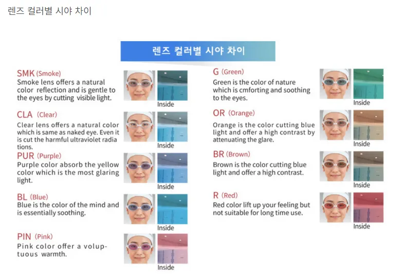 수경 렌즈 컬러별 시야