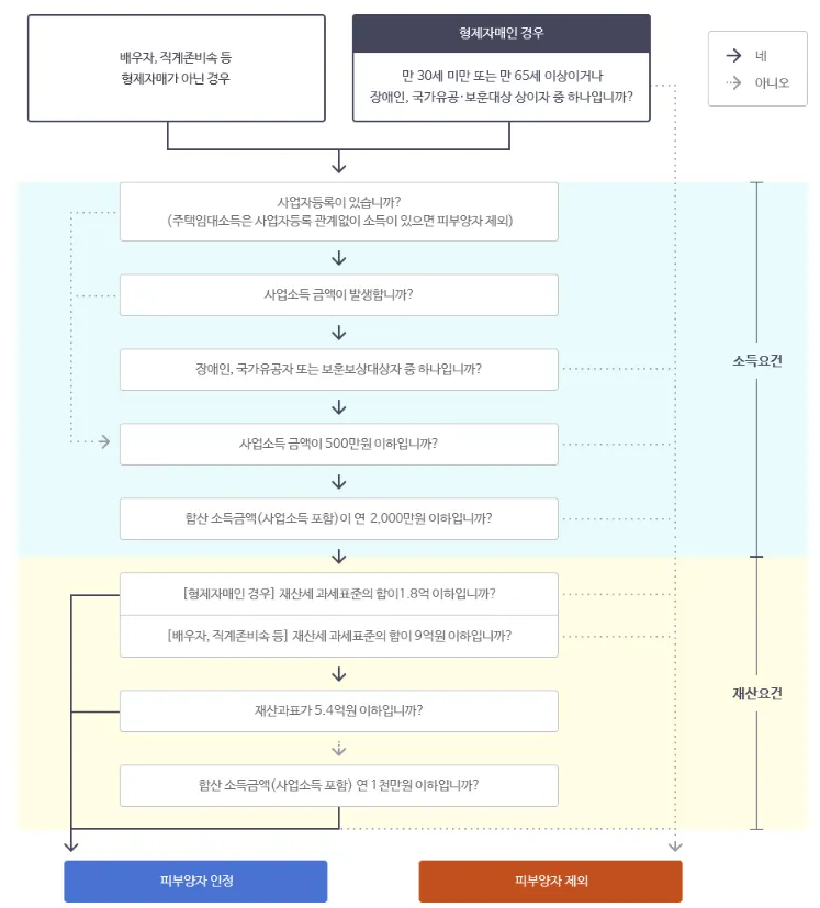소득/재산요건 충족하는 형제/자매 중 미혼 65세 이상, 30세 미만