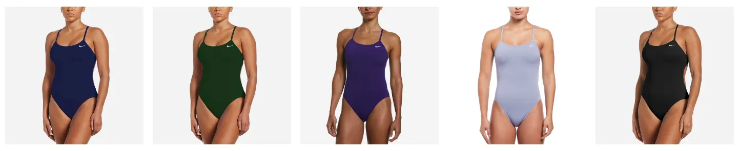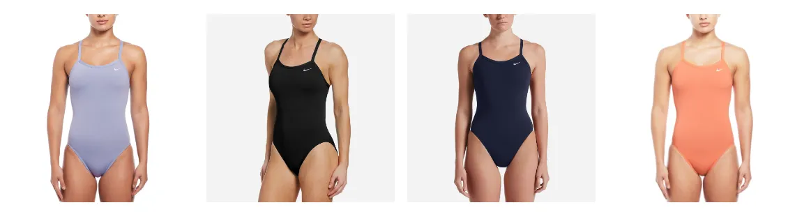 나이키 수영복은 어깨끈과 등부분의 쉐입, 전체 핏을 통해 모델명을 아래와 같이 분류했고, 제품라인을 고르고, 컬러를 고르면 된다. 제품라인에 따라 컬러 옵션이 다양하기 때문에 원하는 컬러가 있다면, 컬러를 정하고 끈타입을 정하면 될 것 같기도 하다. 끈타입 기반의 모델 분류는 아래와 같다.