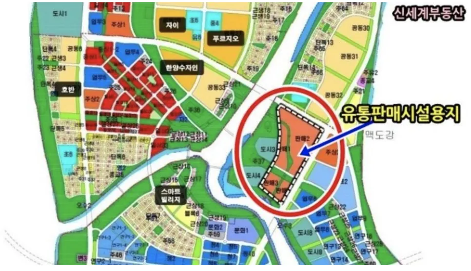 에코델타시티의 상업시설은 무엇일까? 세물머리 바로 옆이 상업시설이 들어설 부지이다. 역시 입지 좋은 곳에 들어선다. 이 곳 C5BL은 아울렛(현대)로 확정되었고, 3214.7억에 취득했다고 한다.