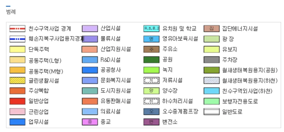 핑크: 세물머리 (세 물이 만나는 지점, 입지가 좋음)