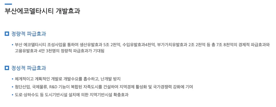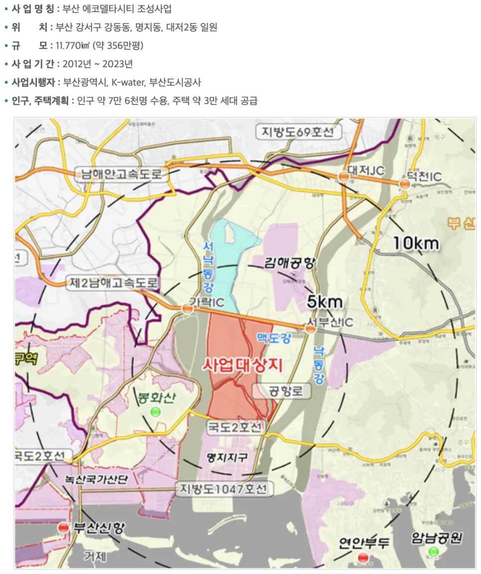 부산의 도시계획 중에 하나인 에코델타시티에 대한 조사 내용이다.